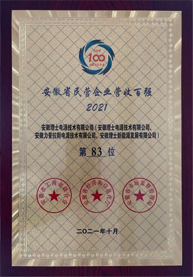 10月20日,安徽省工商聯(lián)、省經(jīng)信廳、省市場監(jiān)管局聯(lián)合舉辦2021安徽省民營企業(yè)百強(qiáng)發(fā)布會。安徽理士蓄電池(安徽理士、安徽力普拉斯、安徽理士新能源)位列營收百強(qiáng)第83位和制造業(yè)綜合百強(qiáng)第38位。